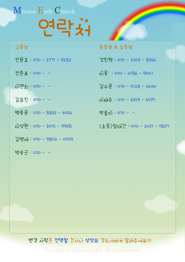 교회 연락망 최종 견본이 완성이 되어서 올립니다.