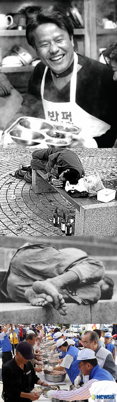 하지만.. 훗날.. 최일도 목사님은.. 거리에 쓰러져있던 그 할아버지의 모습을 잊지 못한채 유학의 길을 접고 노숙자들에게 밥을 퍼주는 "밥퍼"사역을 시작하게 되셨다고 한다..