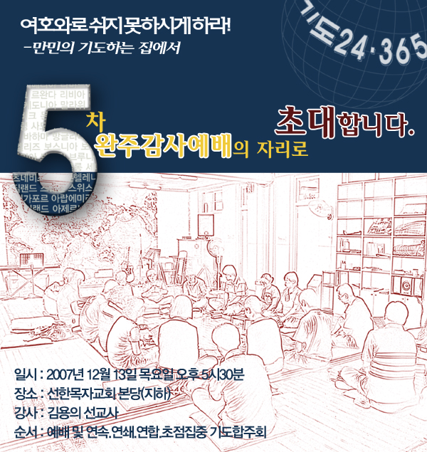 오는 12월 13일(목)에 5차 완주감사예배를 가질 계획입니다.